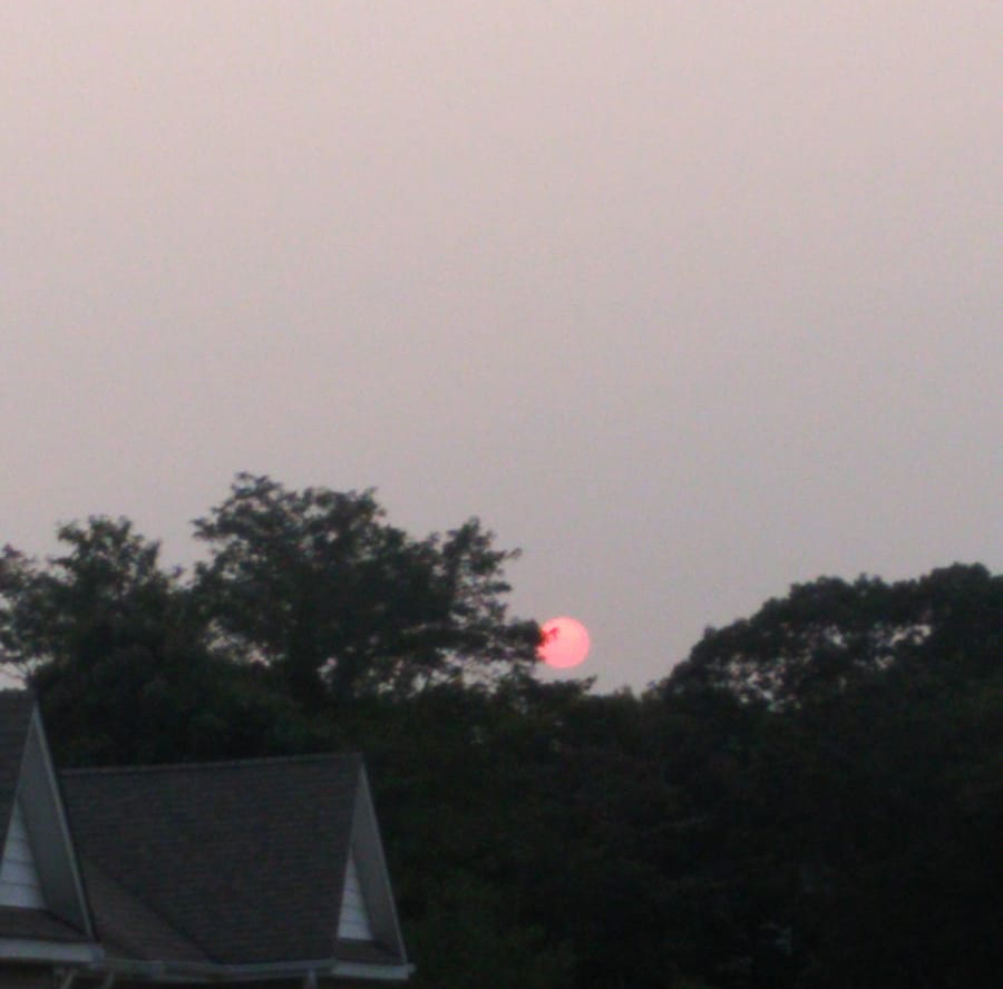Red Sun Sunset on US East Coast (from California Fires, with video)