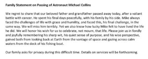 MichaelCollinsFamilyStatement